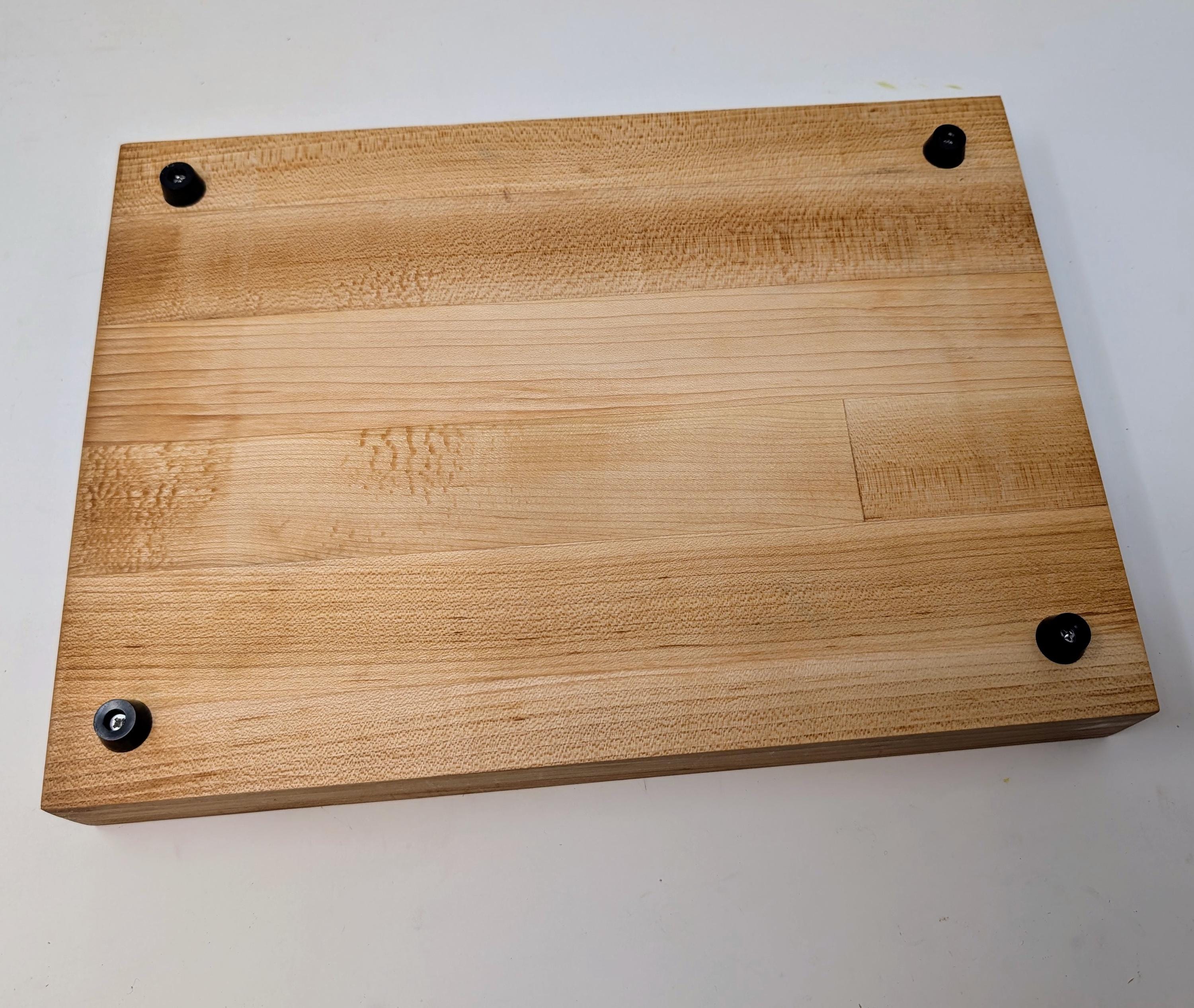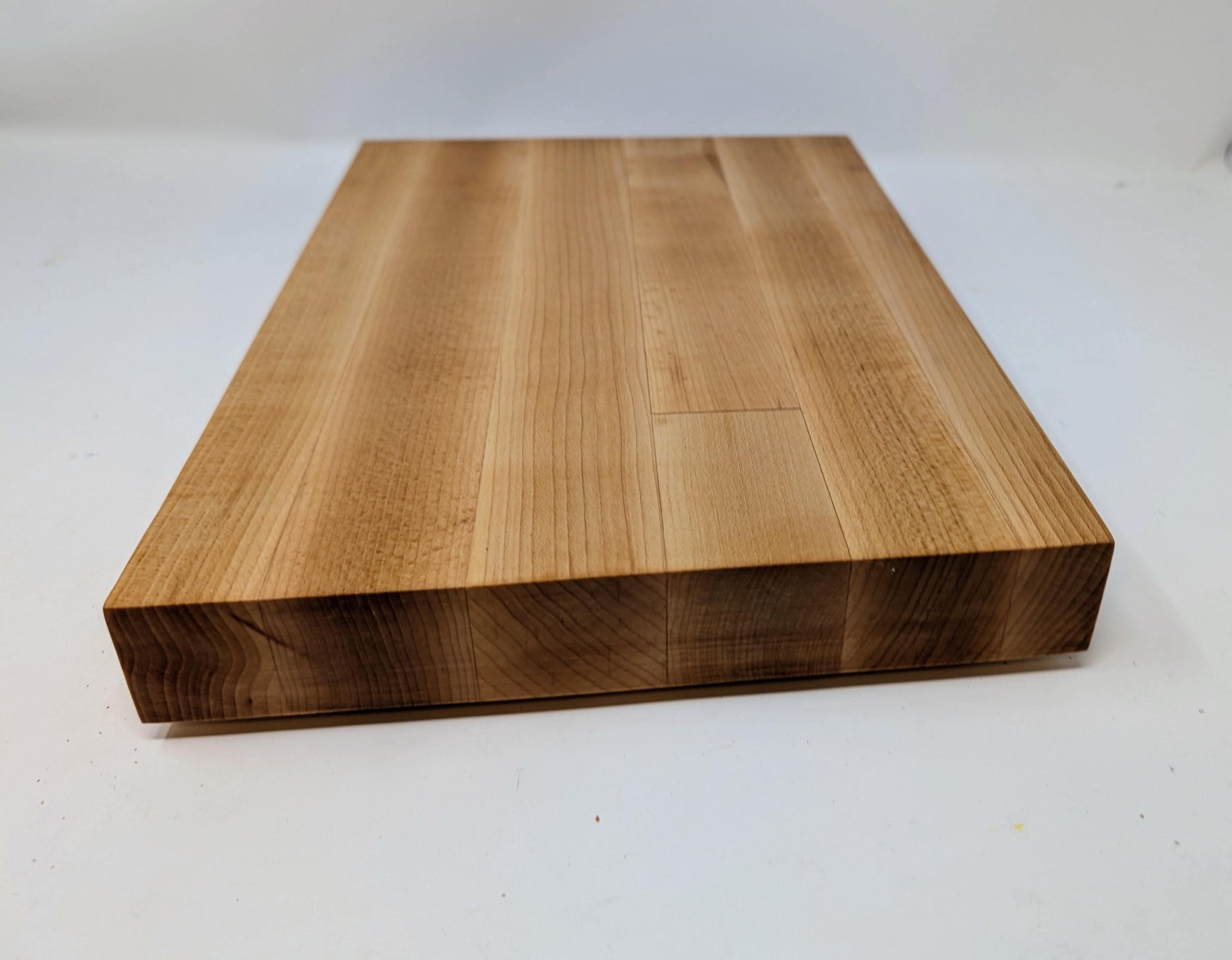 This cutting board is made from real maple 1 1/2" butcher block made from the same material as expensive butcher block counter tops.